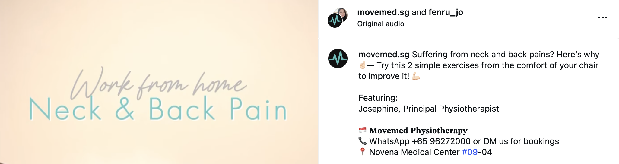 📍(Novena) MoveMed Physiotherapy, 10 Sinaran Dr, #09-04, Novena Medical Center, Singapore 307506